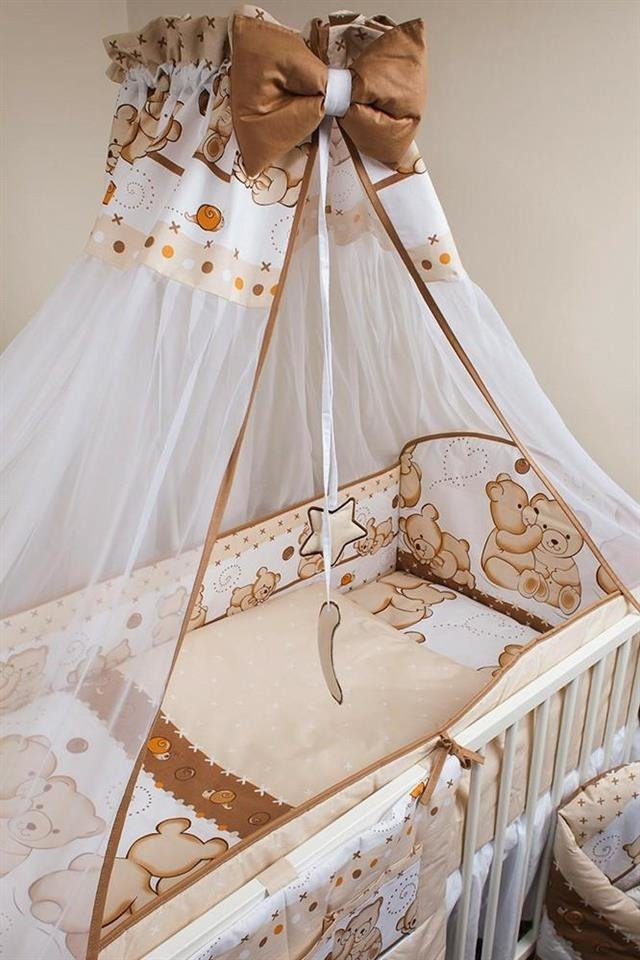 Baldachim z szyfonu w rozmiarze 160x360 cm, nie tylko nada całemu dziecięcemu pokojowi niezwykłego uroku, ale również wspaniale wpłynie na dziecko. Maluch, który będzie widział piękne kokardy oraz urocze misie, na pewno będzie czuł się w łóżeczku bezpiecznie i komfortowo.