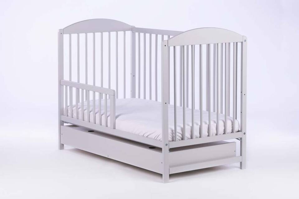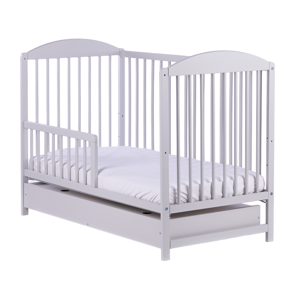 Szare łóżeczko dziecięce PETIT FIX z szufladą z opcją tapczanik